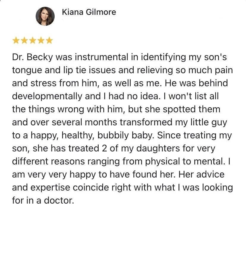 Your first visit will be approximately 30 minutes to allow for Dr. Becky to review your history and assess your needs as well as address any questions or concerns.